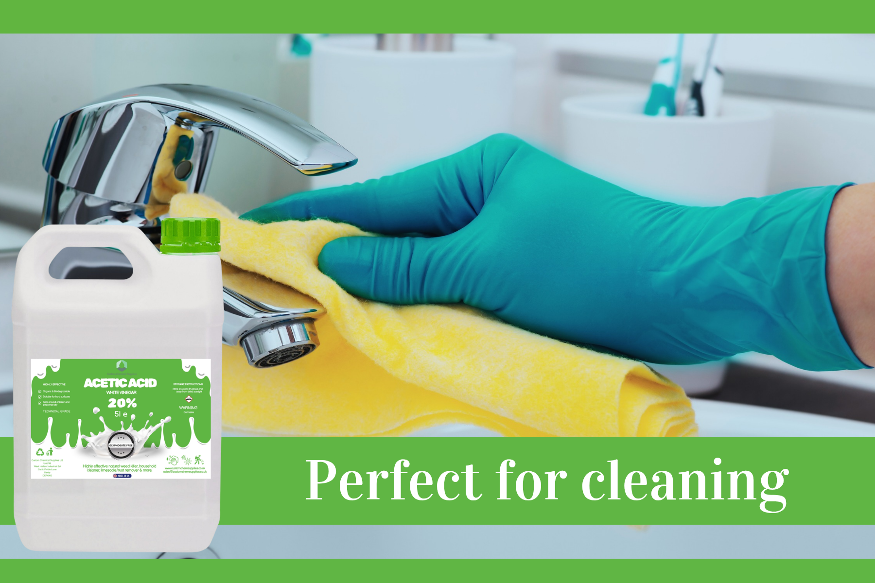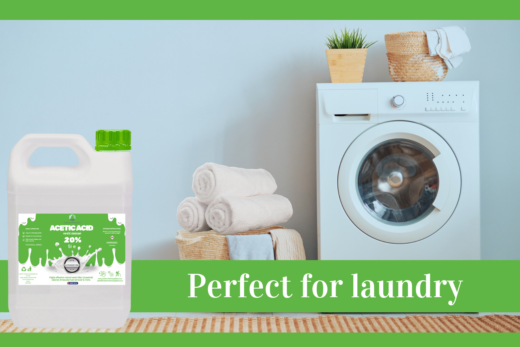 The White Vinegar 5L offered by customchem is a highly concentrated acetic acid solution, boasting a 20% strength level that is 4 times more potent than regular spirit white vinegar. This all-purpose liquid cleaner is perfect for household and laundry use, providing a powerful and efficient cleaning solution for a variety of surfaces and fabrics. With its strong formula, this product delivers effective and reliable results in keeping your home clean and hygienic.