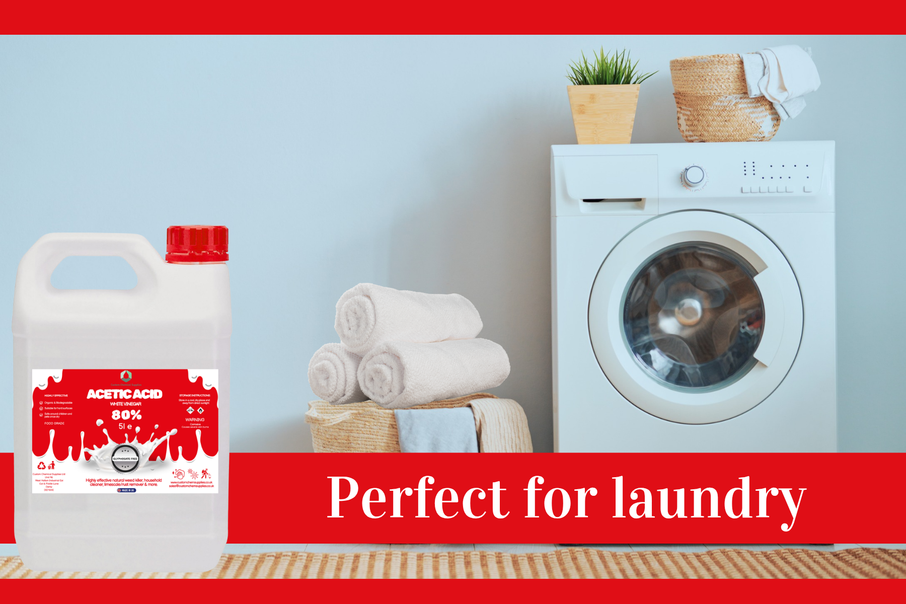 The White Vinegar 5L offered by customchem is a highly concentrated acetic acid solution, boasting a 80% strength level that is 16 times more potent than regular spirit white vinegar. This all-purpose liquid cleaner is perfect for household and laundry use, providing a powerful and efficient cleaning solution for a variety of surfaces and fabrics. With its strong formula, this product delivers effective and reliable results in keeping your home clean and hygienic.